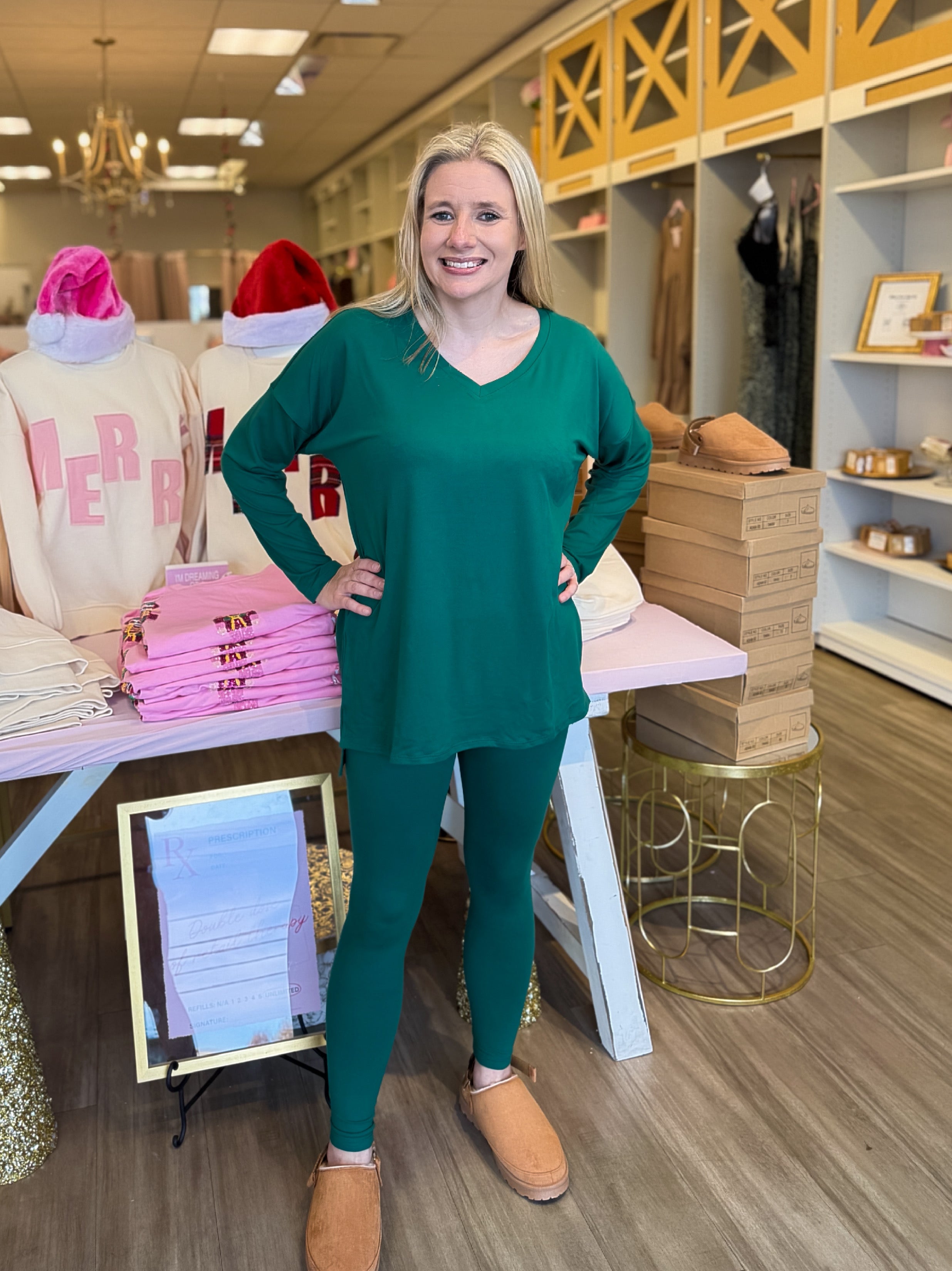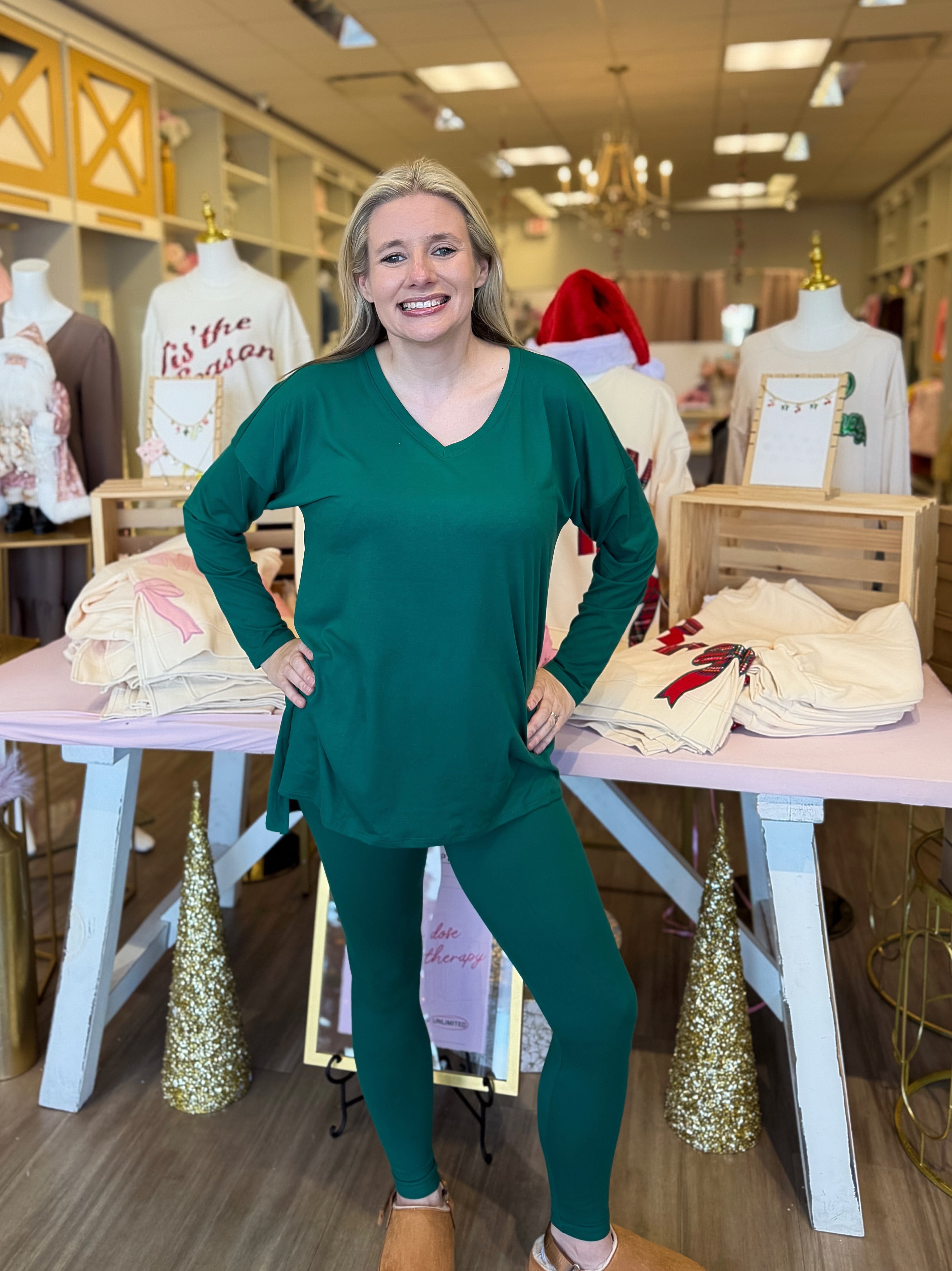 Make a statement while staying comfy in our Bold Moves Lounge Set, available in Hunter Green, Black, and Ruby! This buttery-soft matching set features a relaxed long-sleeve top with side slits and coordinating high-stretch leggings that move with you.